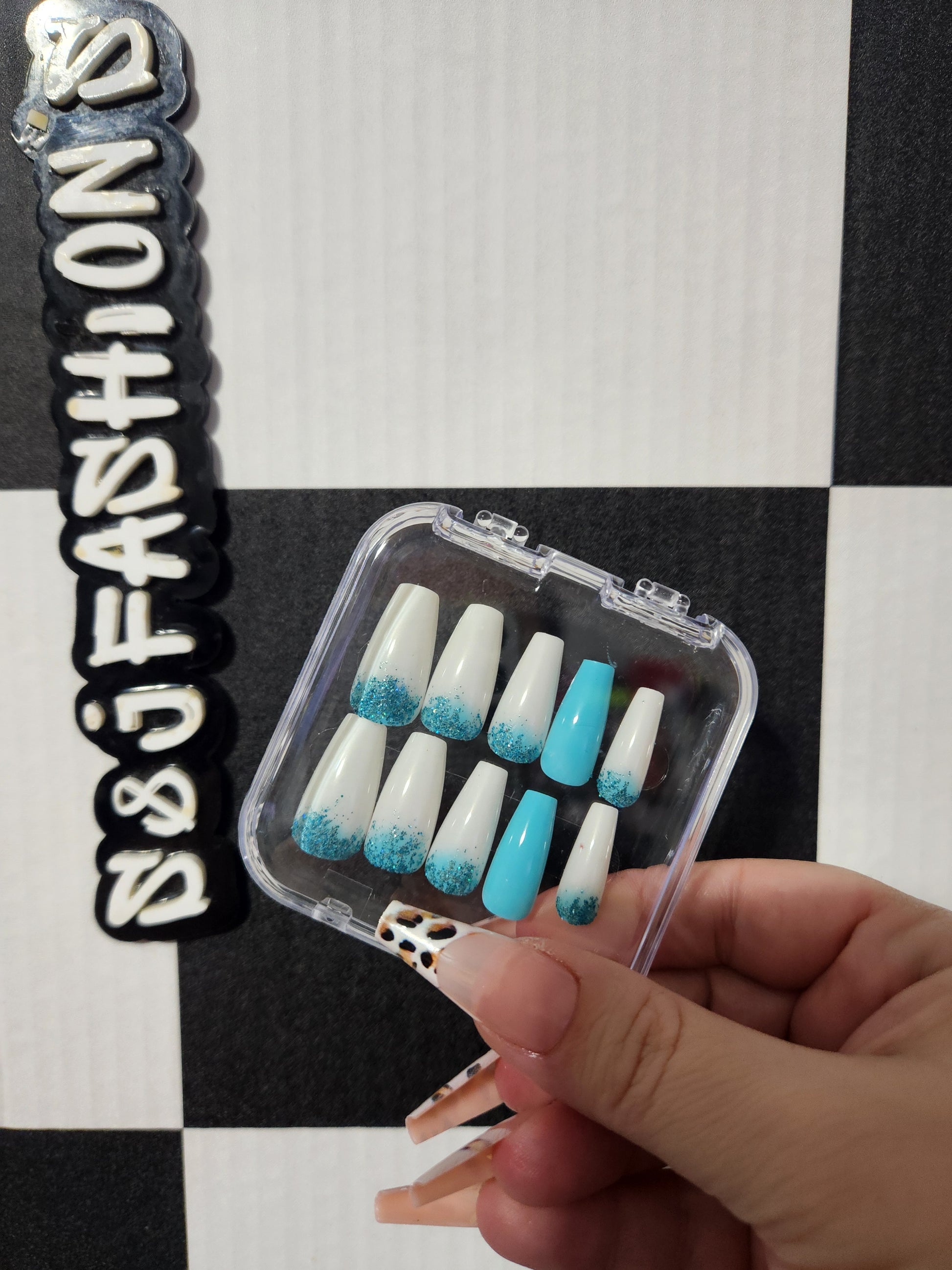 Blue Glitter Med Nails